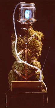 by Marque Cornblatt. One work, "Amber Waves," is a gutted antique radio