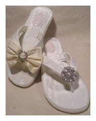 gorgeous moire taffeta flip-flops.What bride wouldn't want a pair of these? Tracey also designs flip-flops for black-tie occasions and she will even custom hand-paint a pair of shoes for you. Share on Facebook |